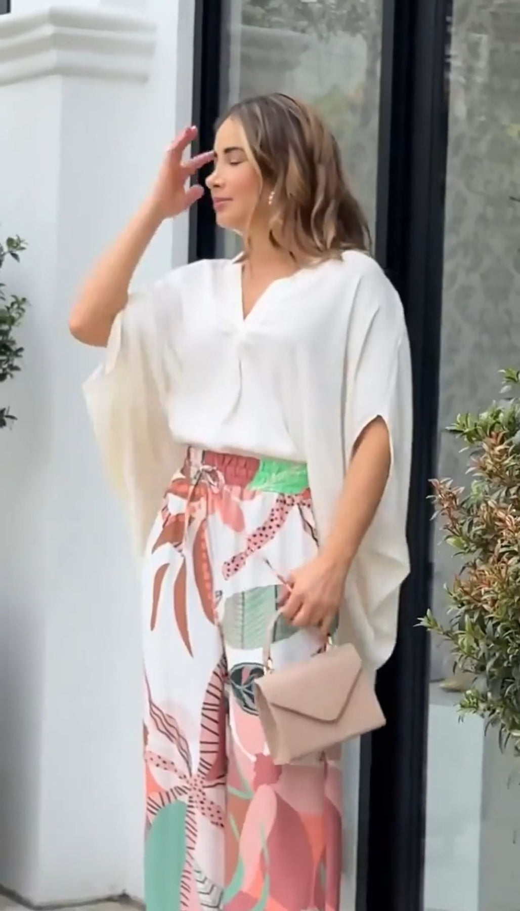 Conjunto Elegancia Tropical - Blusa fluida + pantalón estampado