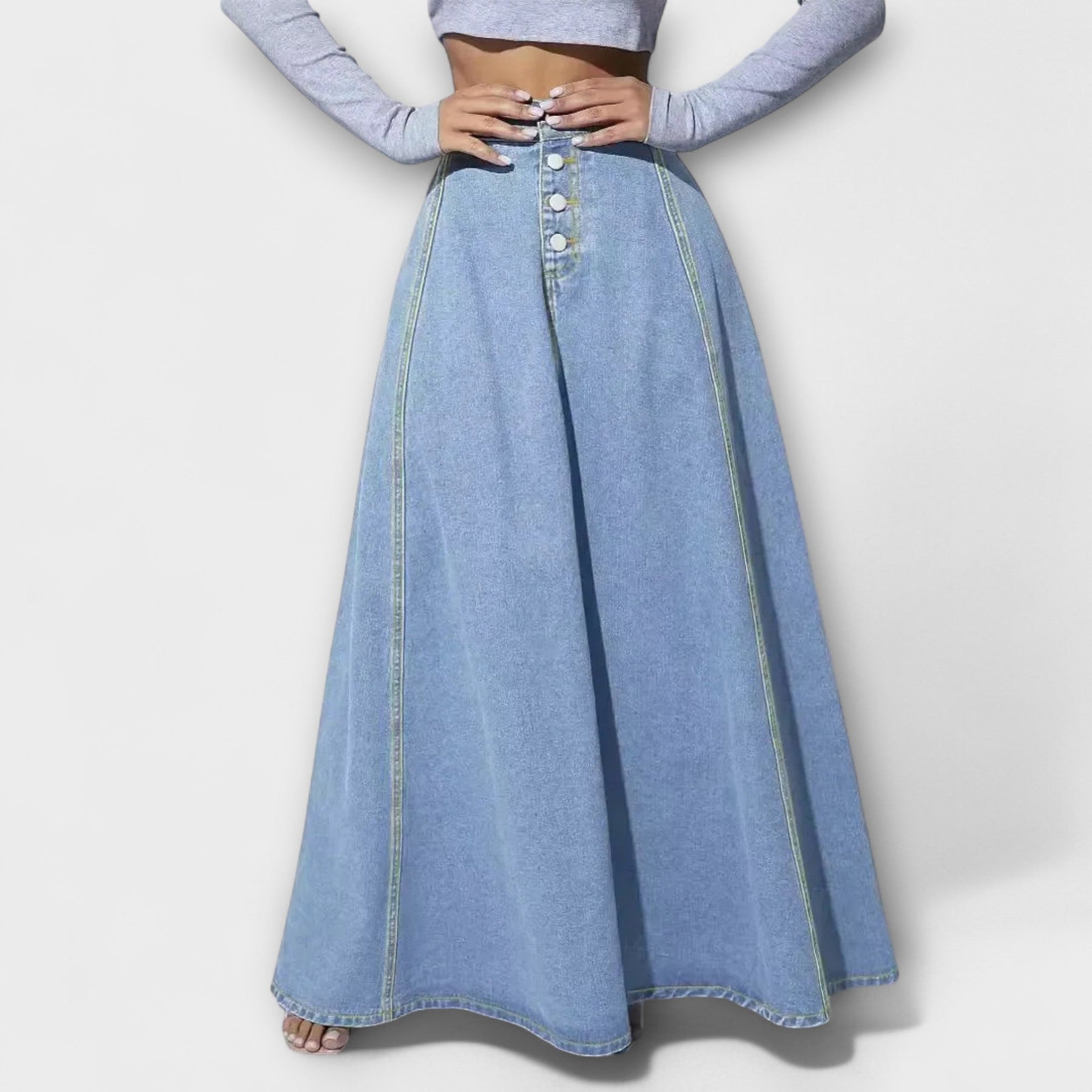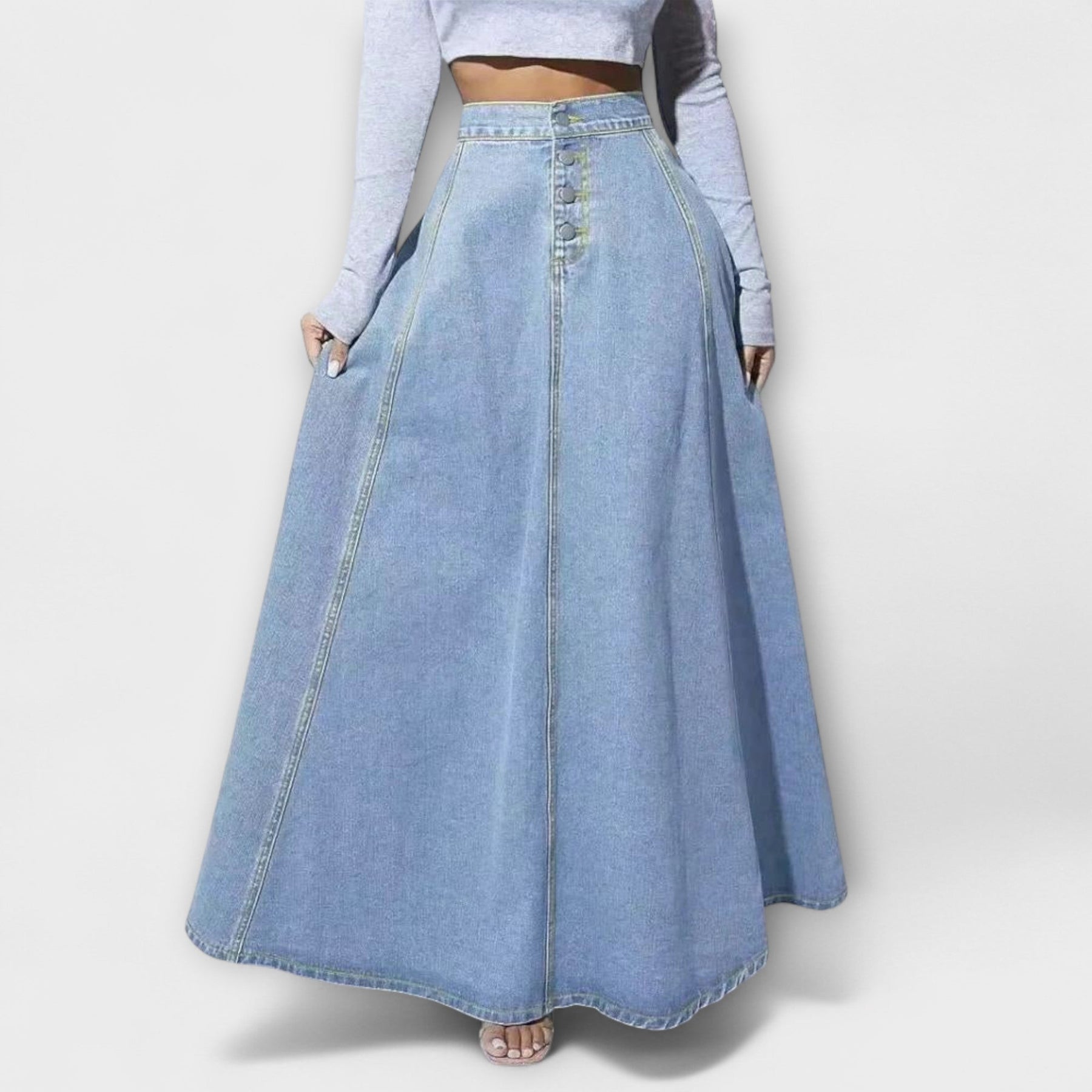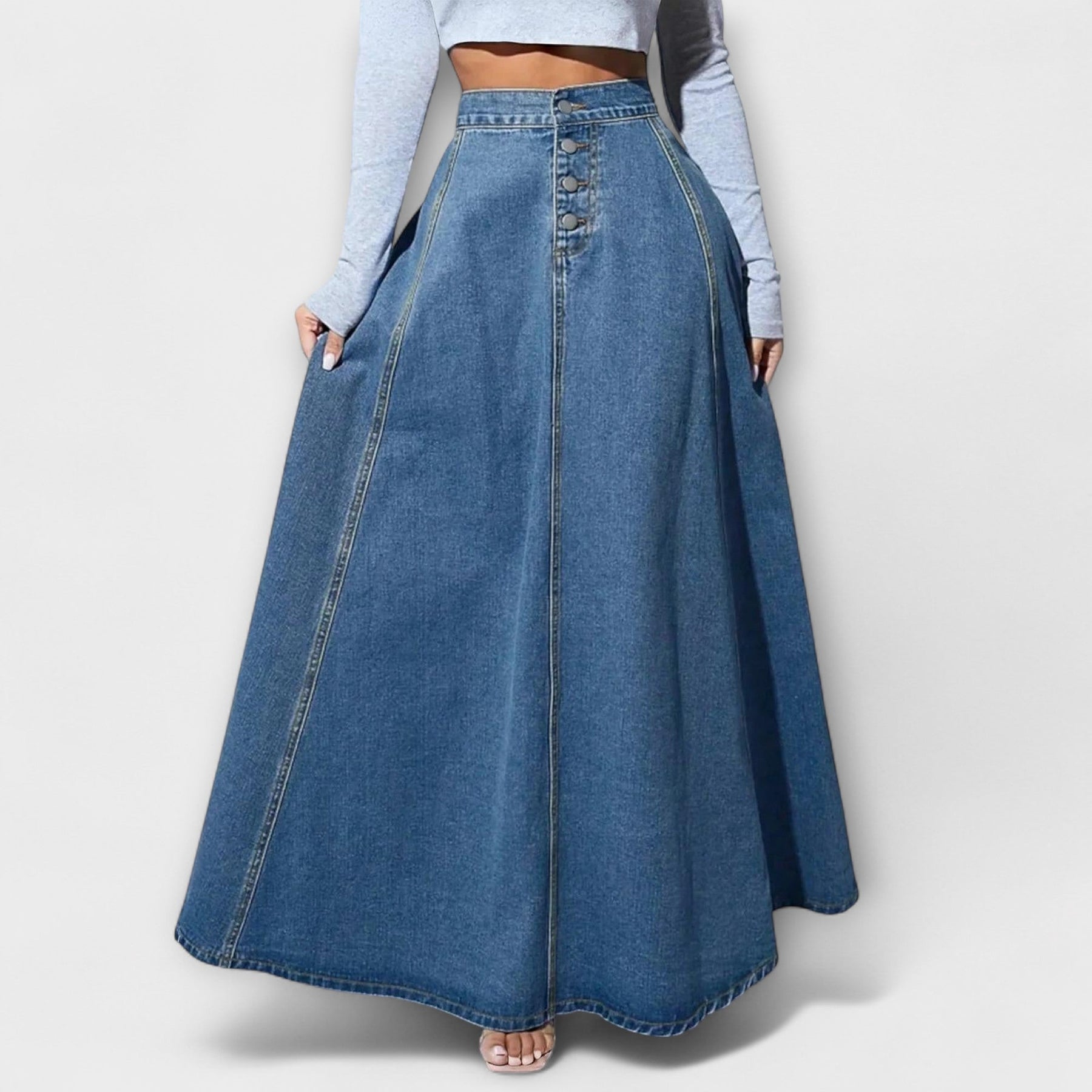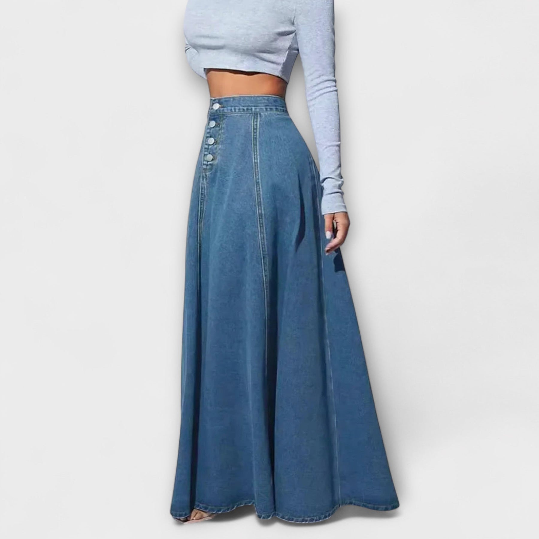 La falda de mezclilla Rosita para mujeres es un imprescindible, que combina el encanto vintage con un estilo moderno. La cintura alta y los clásicos cierres de botón proporcionan un look relajado y elegante a la vez – perfecto para el día a día y el fin de semana.