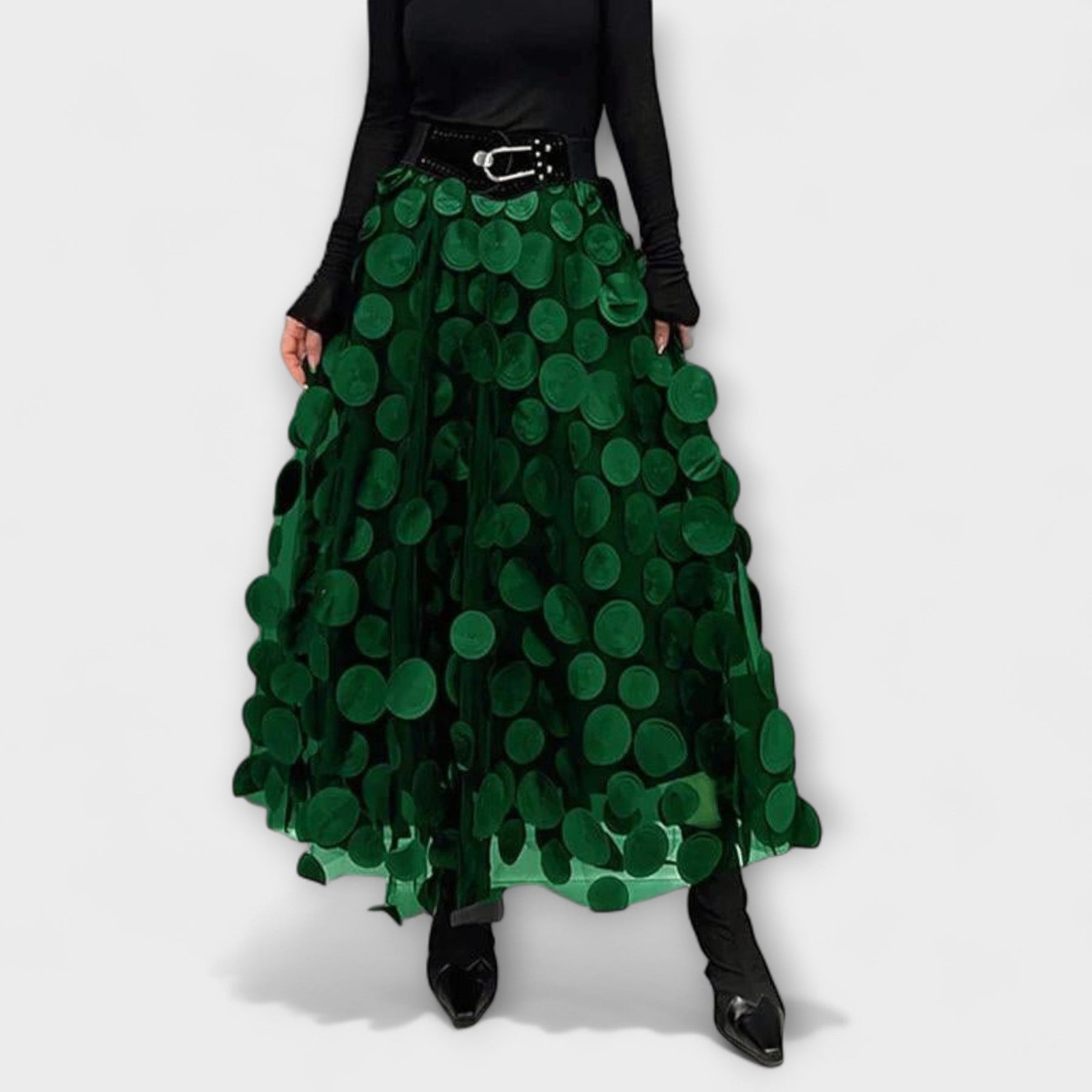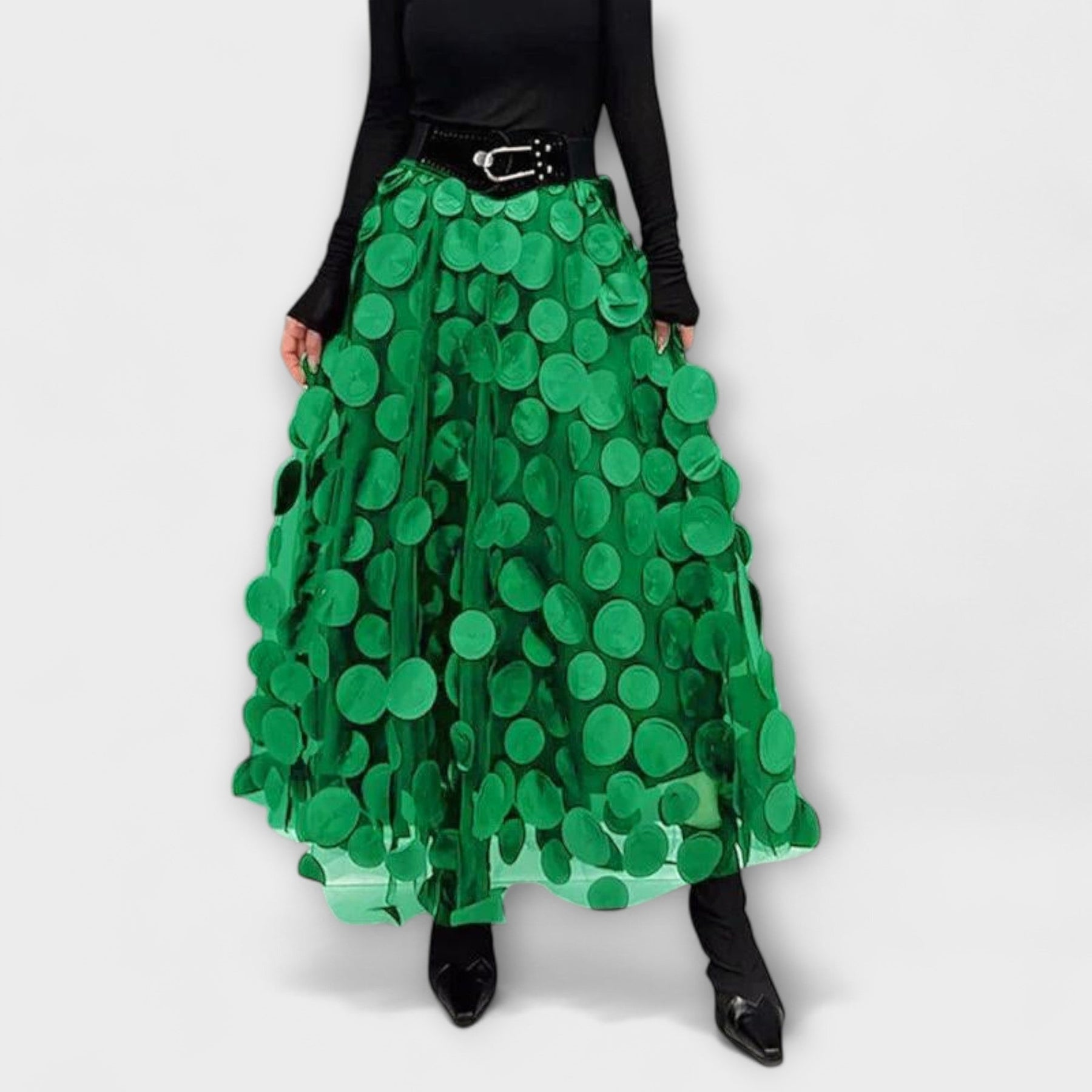 La falda Tamara añade un toque fresco y femenino a tu guardarropa con su clásico diseño de lunares. El ajuste ligero y el corte acampanado la hacen perfecta para días soleados y noches relajadas. Una elección encantadora para todas aquellas que aman el estilo con personalidad.
