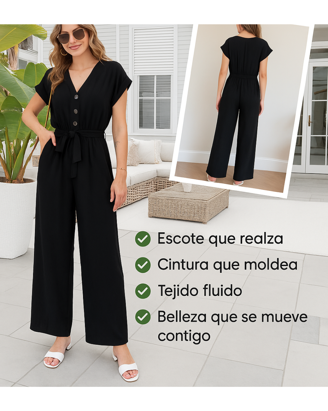 🟣 Nota: Este mono tiene un diseño suelto y fluido, con cinturón ajustable en la cintura para mayor comodidad.
